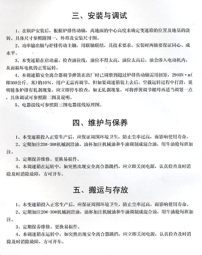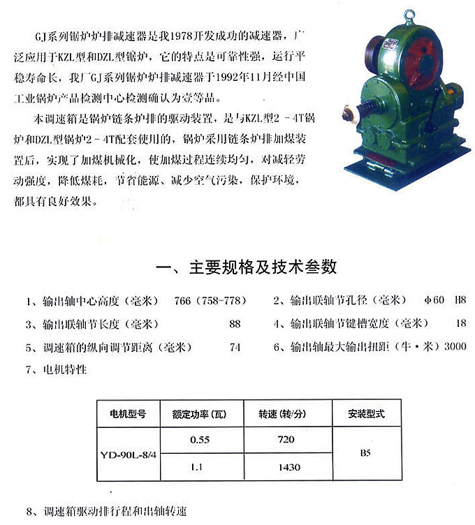 GJ系列锅炉调速箱(炉排调速器)技术参数及说明